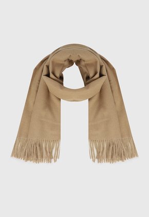 Tejido suave y cálido . Acabado con flecos . El suave diseño de esta bufanda crea una apariencia de textura natural. La pieza está diseñada en colores neutros y naturales con bordes de flecos naturales complementarios.