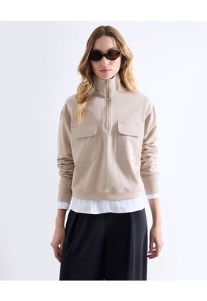 Buzo para mujer con cuello alto, media cremallera y bolsillos tipo parche. Diseño funcional con aire urbano que se adapta a tus días activos. Su silueta moderna aporta versatilidad y combina fácilmente con pantalones anchos o denim. ¡Haz tu pedido ahora!Especificaciones:Composición: 70% Algodón 23% Poliéster 7% ElastanoInstrucciones de Lavado:No dejar en remojoLavar en agua fría separadamenteNo usar blanqueadorNo retorcerSecar a la SombraPlancha tibiaHecho en ColombiaGarantía: 30 Días.