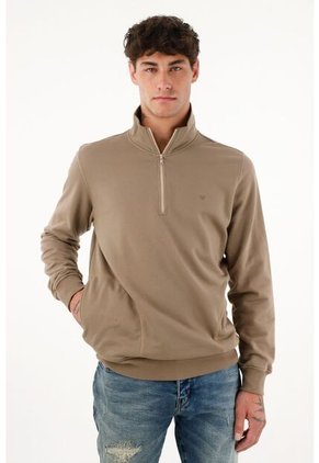 ¡Elegancia cool! Un buzo con detalles clásicos y bien pensados para que puedas asistir a tus planes formales cómodo y abrigado. Características- Color: café - Cerrado - Cuello alto con cierre - Manga larga - Bolsillos en costados - Puños y fajón en rib - Raqueta bordada tono a tono en punto corazón - Material: Algodón 99% Elastano 1% Sobre el fit Esta silueta cuenta con un ajuste cómodo y moderno, mientras su corte recto se adapta con facilidad a cualquier tipo de cuerpo.