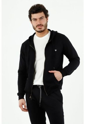 Buzo De Hombre, Silueta Amplia, Con Capucha, Manga Larga, Color Negro