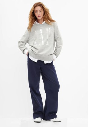 GAP te trae este buzo de tejido suave, cuello redondo, mangas largas con puños acanalados. Luce el brillante logo GAP en el frente. Pretina con aberturas en los costados. Puedes estilizar la prenda llevándola con una camisa por debajo.