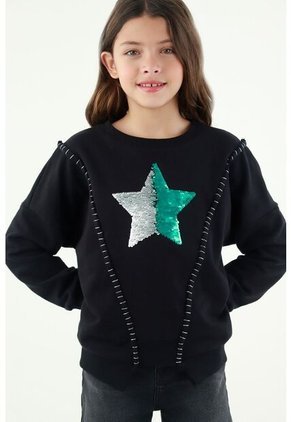 ¡Estilo a donde vayas! Usar un buzo nunca había sido tan divertido. Características- Color: negro - Manga larga - Estrella brillante que cambia de color - Material: Algodón 98% Elastano 2% Sobre el fit Luce como una estrella a donde quiera que vayas.