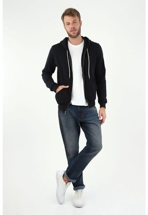 Con este buzo negro tus looks estarán completos. Su acabado perchado en el interior, capucha doble, cordón funcional, bolsillo tipo canguro, acabados en rib y bordado en punto corazón, lo convertirán en tu nuevo favorito para los días fríos. Características- Color: negro - Cuello normal - Manga larga - Silueta regular - Bolsillo canguro - Cierre frontal - Bordado punto corazón - Material: 100 % algodón. Sobre el fit Este buzo de silueta regular se ajusta a todo tipo de cuerpo. El cierre frontal hace que sea muy fácil de poner y de quitar; por su confección es una prenda cálida ideal para crear looks casuales.