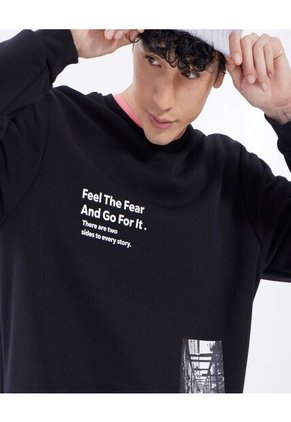 Buzo cuello redondo para hombre con estampado, puños ajustados, silueta semiajustada, textura lisa. Una prenda en tendencia que puedes usar con pantalones, bermudas o jeans para un look cómodo y relajado. Hecho 100% en poliéster.Especificaciones:Color NegroComposición: Poliéster 100%Instrucciones de Lavado:No dejar en remojoLavar en agua fría separadamenteNo usar blanqueadorNo retorcerSecar a la SombraPlancha tibiaHecho en ColombiaFabricado por: Manufacturas Eliot SAS