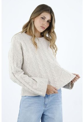 ¡Acogedor y muy top! Con este buzo clásico lograrás outfits súper femeninos y llenos de estilo. Características- Color: blanco - Silueta crop - Oversized - Semiliviano - Tejido - Cuello redondo - Material: acrílica 57.1% poliester 31.2% lana 9.3% elastano 2.4%. Sobre el fit su silueta oversized te hará sentir muy cómoda como si nunca hubieras dejado tu cama. Una prenda abrigada, perfecta para los días más fríos. Complementa tu outfit con tus jeans preferidos.
