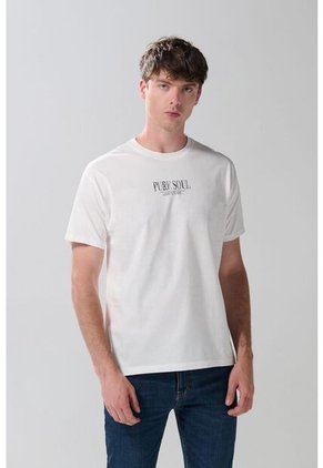Camiseta para hombre en tono unicolor, elaborada en tela de algodón, cuenta con manga corta, textos estampados en frente y espalda, cuello redondo, hombro rodado y una horma ligeramente holgada. Refleja la mejor versión de ti luciendo esta prenda con un jean 90´S en tu próxima salida con amigos. ¡Serás la sensación!