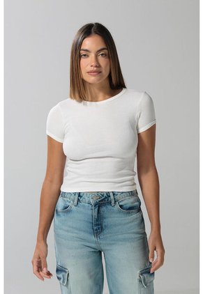 Camiseta Para Mujer Manga Corta Cuello Redondo Color Crudo Marca Seven Seven #28096548