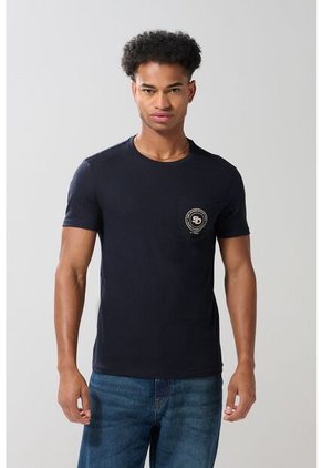Camiseta azul intensa cuello redondo para hombre cuenta con manga corta, bolsillo en el pecho con estampado college y un fit que se ajustará al cuerpo en la medida precisa. Dale a tu outfit una pincelada de estilo combinando esta prenda con bermudas o jeans. ¡Inspirarás a los demás con tu atuendo!