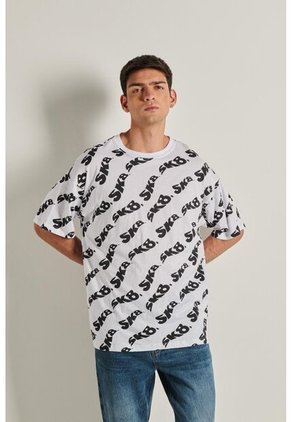 Camiseta cuello redondo para hombre en tono blanca cuenta con hombro rodado, manga corta, diseños de textos negros estampados y una silueta oversize en el cuerpo. Gracias al estilo urbano de esta prenda podrás crear cientos de looks para disfrutar de tus salidas con amigos o planes descomplicados.
