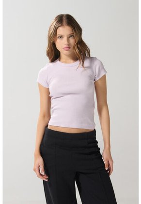 Camiseta unicolor para mujer cuenta con manga corta, cuello redondo, detalles con finas texturas acanaladas y un ajuste ceñido al cuerpo. ¡Nada más versátil que esta prenda! Combínala con un jean mom y un par de tenis planos, así crearás un total look con el que te destacarás.