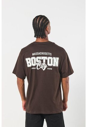 Camiseta oversize manga corta estampación tipo college en delantero ye spalda con relieve al tacto en color blanco, camiseta en jersey liviano color negro