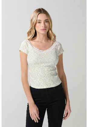 Camiseta Para Mujer Manga Corta Cuello Redondo Color Crudo Marca Seven Seven #28096358
