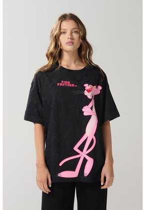 Camiseta para mujer cuello redondo manga corta, con estampado en frente de Pantera Rosa, perfecta para complementar cualquier tipo de outfit.
