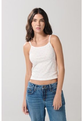 Camiseta manga sisa crema clara para mujer cuenta con diseños continuos de cerezas, escote cuadrado, tiras delgadas y una silueta ceñida al cuerpo. ¡Esta es la prenda que tu estilo pide a gritos! Combínala con un jean jegging y crea un outfit juvenil con el que marques la diferencia.