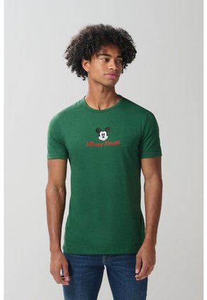 Camiseta unicolor manga corta para hombre cuenta con diseño de Mickey (Disney) estampado en frente, cuello redondo y un fit que se ajustará al cuerpo en la medida precisa. Esta prenda será esencial para acompañar tus fines de semana soleados. ¡Con una bermuda en dril crearás un look en tendencia!