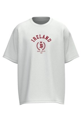 Camiseta manga corta para hombre en tono crema clara cuenta con diseños college en frente y espalda, hombro rodado, cuello redondo y una silueta oversize en el cuerpo. Encuentra una nueva forma de proyectarte al mundo con esta prenda, combínala con tu mejor jean ancho y lúcela para disfrutar de una tarde con amigos.