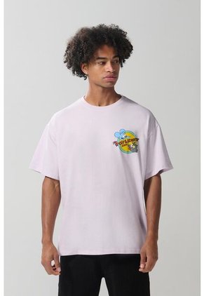 Camiseta Rosada Estampada En Frente Para Hombre