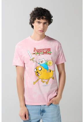 Camiseta manga corta rosada clara con efecto tie dye para hombre cuenta con diseño de Hora de Aventura estampado en frente, cuello redondo, hombro rodado y un fit ligeramente ajustado. Llena tu vida de color con esta prenda, combínala con un jean skinny y luce las últimas tendencias de la moda.