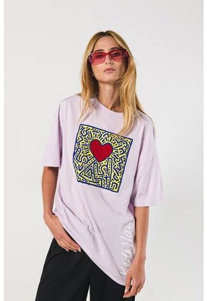 Camiseta para mujer cuello redondo manga corta, con estampado en frente de Keith Haring, perfecta para complementar cualquier tipo de outfit.