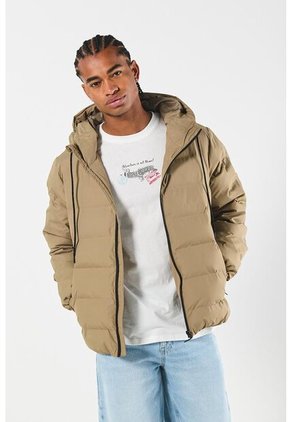 Chaqueta acolchada para hombre en tono unicolor cuenta con capota, cierre delantero con cremallera, 2 bolsillos laterales, costuras horizontales y un fit ligeramente ajustado al cuerpo. Refleja la mejor versión de ti en tu look combinando esta prenda con un jean, así disfrutarás con estilo de los climas fríos.