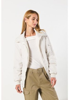 Chaqueta unicolor bomber para mujer cuenta con cuello alto, ruedo y puños en rib, 2 bolsillos con tapa en los costados, cierre en frente con cremallera y un fit ligeramente holgado en el cuerpo. Crea un look juvenil y atemporal combinándolo con tus jeans Koaj favoritos, así impactarás a los demás con tu propio estilo.