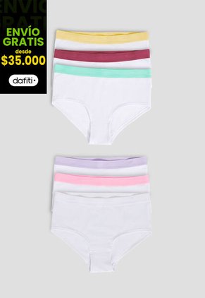 Cachetero Paq X6, Silueta: Ajustada, Material: Algodon, Tejido: Punto, Pretina: Elástico, Tiro: Normal, ¡Vive La Nueva Tendencia Del Mundo De La Moda! Te Presentamos Una Colección Llena De Textura Y Estampados Perfecta Para Tu Día A Día Y Siéntete Dando Un Primer Paso Al Estilo. Recomendación: Recuerda Que La Talla En El Empaque Y En El Producto Puede Diferir Con La Numeración Colombiana, Esto Se Debe A Las Medidas Utilizadas Por El País De Origen De Cada Producto. Te Recomendamos Consultar La Tabla De Medidas Para Que Escojas La Talla Correcta. Los Productos Interior Como Pantys, Bodys Y Cacheteros No Tienen Cambio. Origen: Producto Nacional.