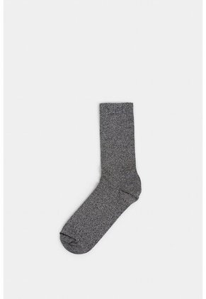 Pensados para ser vistos, nuestros calcetines de algodón con hilos de lurex plateados, son ideales para looks causales y divertidos que permitan que el contraste de color y el brillo sean protagonistas.