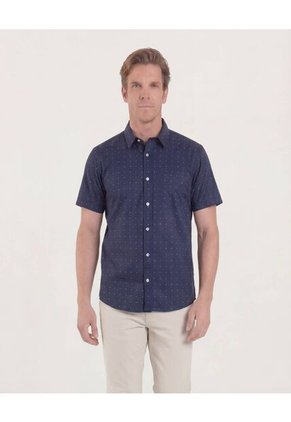 Camisa Para Hombre Manga Corta Con Bolsillo Cuello Casual M Color Azul Marca Ostu #60010882