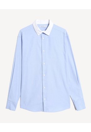 Camisa Para Hombre Manga Larga Sin Bolsillo Color Azul Marca Ostu #60010596