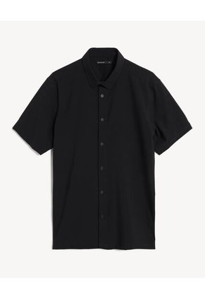 Camisa regular de manga larga con cuello clásico y botones al frente. Su silueta relajada y ligera la convierte en una prenda ideal para lograr combinaciones modernas y minimalistas. ¡Haz tu pedido ahora!Especificaciones:Color: NegroComposición: 86% Poliéster 14% ElastanoTipo de cuello: Cuello CamiseroTipo de manga: Manga CortaFit: RegularInstrucciones de Lavado:No dejar en remojoLavar en agua fría separadamenteNo usar blanqueadorNo retorcerSecar a la SombraPlancha tibiaHecho en ColombiaGarantía: 30 Días.
