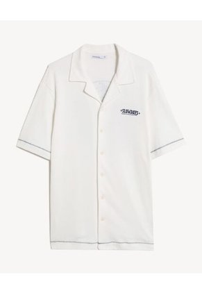 Camisa de silueta relajada con cuello tipo resort, cierre frontal con botones y detalle gráfico bordado que le da un aire fresco y actual. Ideal para looks casuales o combinaciones más elevadas que funcionan todo el día.Especificaciones:Color: CremaComposición: 65% Poliéster 35% AlgodónTipo de cuello: Cuello CamiseroTipo de manga: Manga CortaFit: RelaxedInstrucciones de Lavado:No dejar en remojoLavar en agua fría separadamenteNo usar blanqueadorNo retorcerSecar a la SombraPlancha tibiaHecho en ColombiaGarantía: 30 Días.
