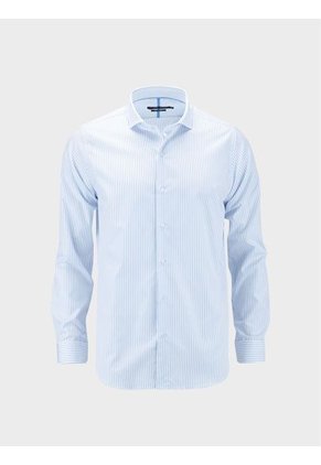 Camisa a rayas con silueta regular fit, elaborada con tela de algodón con cuello de puntas cortas abiertas ideal para usar con o sin corbata. Es perfecta para ejecutivos contemporáneos y hombres que prefieren reemplazar el traje por otras prendas fáciles de llevar, con combinaciones sofisticadas y frescas manteniendo siempre un look elegante.