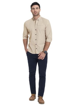 Camisa Para Hombre Manga Corta Con Bolsillo Color Crudo Marca Ostu #60010627