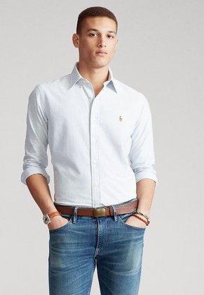 Luce lo mejor de la moda masculina con Polo Ralph Lauren. Esta camisa de tonos claros te brinda un estilo natural debido al corte clásico y sutil con el que fue confeccionada. Cuenta con botones blancos para resaltar su diseño y el habitual logo de Polo Ralph Lauren bordado en el pecho. La puedes vestir en cualquier tipo de ocasión formal y destacar entre los invitados.