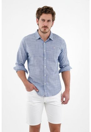 ¡Siempre estarás listo para la diversión! No vuelvas a perderte ningún plan porque no sabes qué usar, con esta camisa tendrás solucionados los mejores eventos. Características- Color: azul - Manga larga - Cuello clásico - Preteñida a rayas - Raqueta bordada en contraste en punto corazón - Perilla con botones - Puños con botón - Material: Algodón 100% Sobre el fit Haz de su diseño clásico tu aliado perfecto para estar cómodo y disfrutar de los mejores planes sin medida.