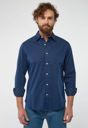 La elegancia de los tonos oscuros con un toque moderno. Destaca con esta camisa en tono azul navy que combina sofisticación y estilo. Sus sutiles detalles en contraste añaden un aire único, mientras que el cierre frontal de botones y los puños ajustables te brindan comodidad y versatilidad. Ideal para looks casuales o para eventos con un toque de formalidad. Calidad y diseño icónicos de NAUTICA, perfectos para cada ocasión.