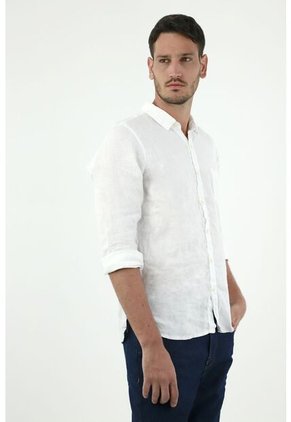 Cuando se trata de lograr looks súper cool, esta camisa manga larga sabe como hacerlo. Tiene bolsillo con parche y cuello nerú. Sin duda, su color blanco te permitirá combinarla con todo. Características-Color: blanca - Cuello nerú - Manga larga - Silueta confort - Material: 100 % linoSobre el fitDe silueta confort y largo regular esta camisa se adapta a todo. Su confección en lino le dará una apariencia muy fresca a tus looks. Combínala con pantalones slim o bermudas tipo chino en colores tierra.