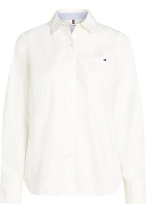 Camisa Blanca Oxford Manga Larga Con Logo Tommy Hilfiger
