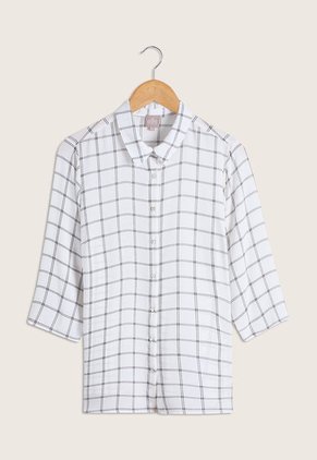 Camisa Blanco-Negro Patprimo • Género: Femenino • Tipo de Producto: Camisa • Color: Blanco-Negro • Actividad: Casual • Material: Poliéster • Cuidados Especiales: Lavarse a máquina, en agua fría, lavar por separado y no usar cloro. • Fit: Custom fit • Tipo de Cuello: Cutaway • Tipo de Manga: Tres Cuartos • Medida Largo Total: 87cm • Medida Torso/Busto: 98cm • Medida Cintura: 96cm • Origen: Producto Nacional • Detalle Especial: Combina moda y tradición textil con lo mejor de Patprimo. Camisa de diseño versátil, unicolor con efecto cuadros, cuello extendido, botones de ajuste frontal, bordes reforzados. • Recomendación: Puedes probártelo antes de solicitar el cambio. • Talla: 20