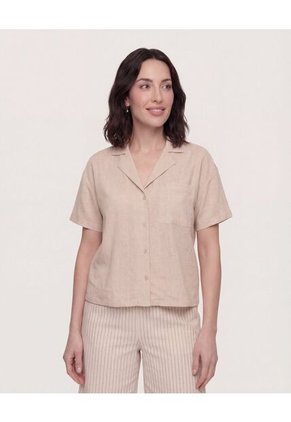 Camisa Boxy Cuello Resort Para Mujer Beige Ostu