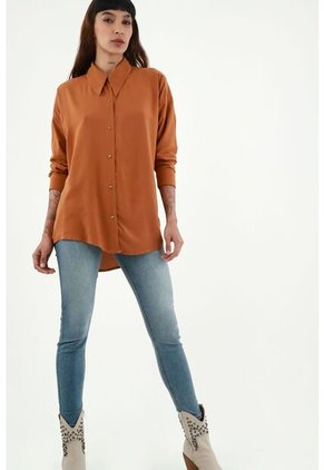 Camisa Café Con Cuello Clásico Para Mujer