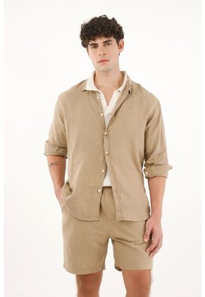 ¡Un diseño para almas libres! Un diseño de horma clásica, pero en un tejido ligero que evoca modernidad. Características- Color: crudo - Silueta Regular - Manga larga - En lino - Cuello clásico con banda - Perilla de botones - Raqueta bordada tono a tono en ruedo - Material: Lino 100% Sobre el fit La silueta fresca y versátil de la temporada que acompañará de un día de oficina a una tarde con amigos.
