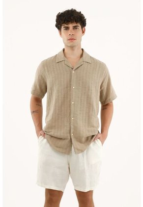 Camisa Café Tipo Bowling Manga Corta Para Hombre