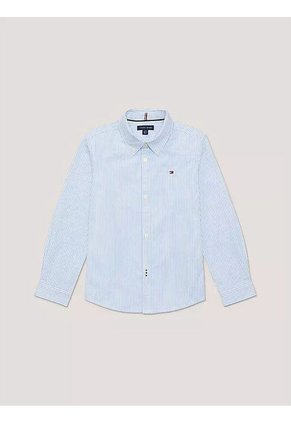 Camisa Celeste A Rayas Con Logo Para Niños Tommy Hilfiger