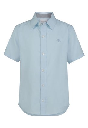 Camisa Celeste Niño Solid Herringbone Con Logo Bordado Calvin Klein
