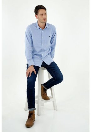 Camisa De Hombre, Silueta Clásica, Cuello Francés Manga Larga, Color Azul