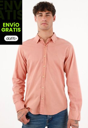 Camisa De Tela Oxford Manga Larga Rosada Para Hombre