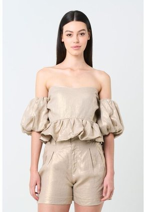 Camisa Elios En Lino Para Mujer Silueta Cropped Camisa Elios En Lino Para Mujer Silueta Cropped Arena S VÉLEZ
