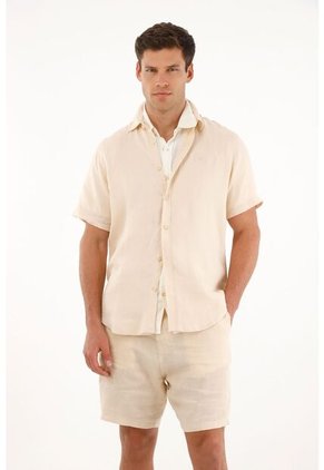 ¡Frescura e inspiración para tus días más relajados! Esta camisa de lino es perfecta para darle un giro moderno y cómodo a tus looks de verano. Características- Color: crudo - Manga corta - Cuello clásico - Perilla con botones - En lino - Raqueta bordada a tono en punto corazón - Material: Lino 100% Sobre el fit Con una silueta suelta y fluida, esta camisa te ofrece comodidad en todo momento, dándote como resultado un look con un toque de sofisticación.