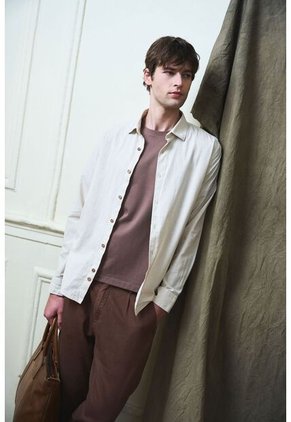 Experimenta la mezcla perfecta de frescura, sofisticación y confort con nuestra camisa de lino para hombre. Esta pieza, diseñada con una silueta semi ajustada y ligera, es una pieza que resalta la belleza natural y la simplicidad en la moda masculina contemporánea. Creada con un enfoque en los detalles únicos y la artesanía refinada, presenta botones de madera y un discreto bordado que le confieren autenticidad y versatilidad. Su estilo elegante y relajado es ideal para climas cálidos, y puede combinarse con una variedad de atuendos, desde bermudas de verano hasta pantalones tipo chino para un look smart casual.